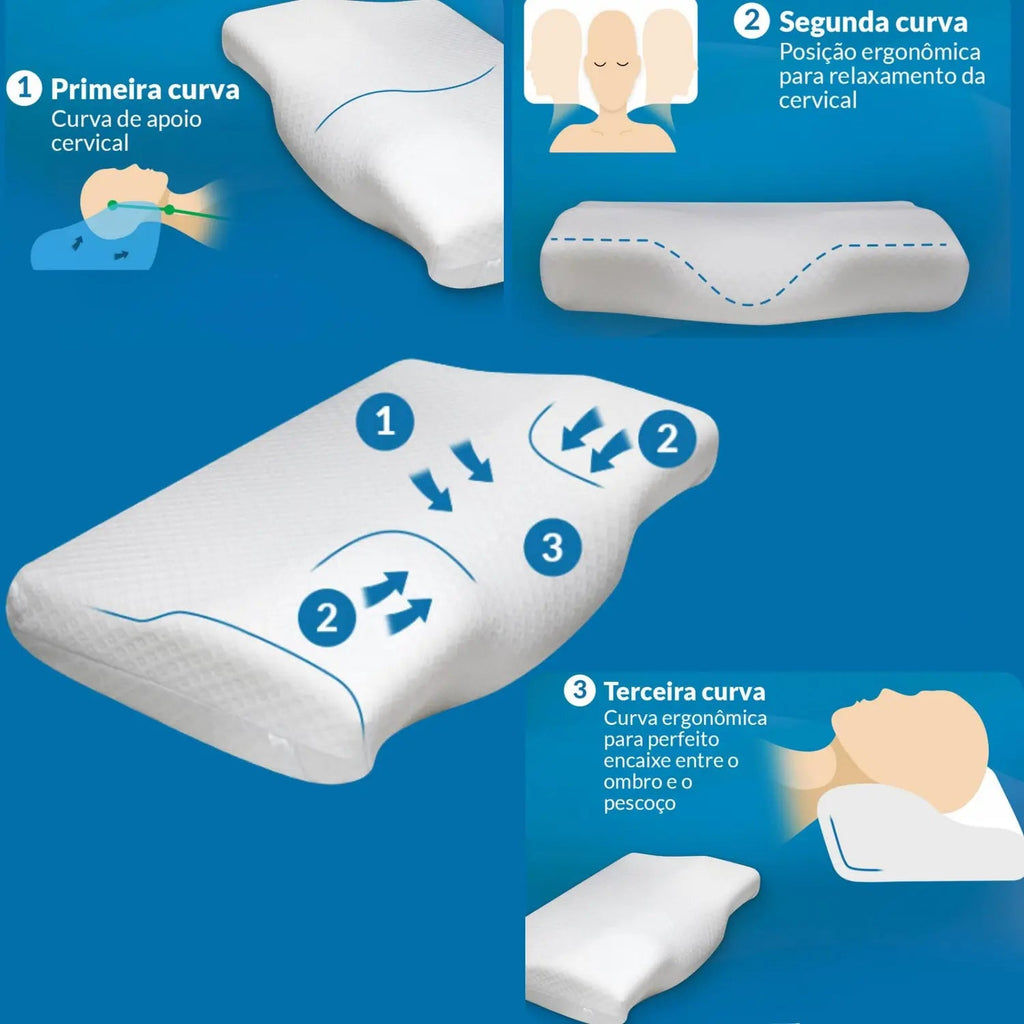 ✅ 1 Travesseiro Ortopédico Cervical com Espuma de Memória