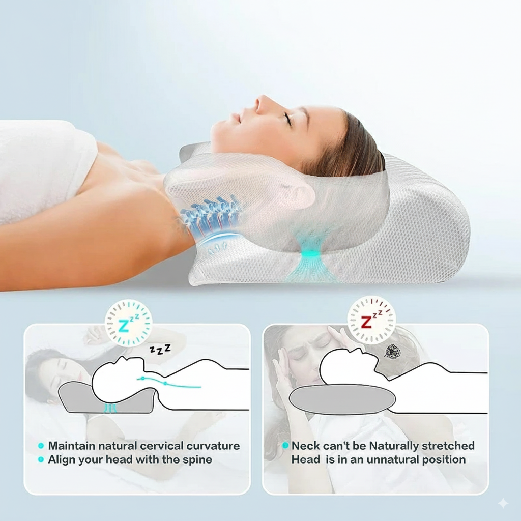 ✔ Reduz ronco e apneia – Mantém a posição correta do pescoço para facilitar a respiração.
